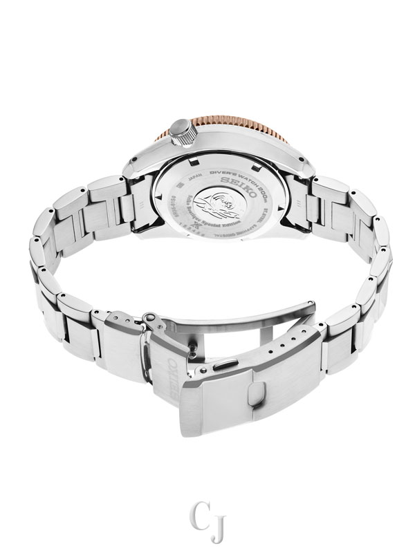 1968 Heritage Diver’s Watch. Designed for those who treat life as the ultimate adventure, the Seiko Prospex line meets every challenge with technological excellence and style. Part of a rich legacy of innovation in high-intensity timekeeping, Prospex continues to celebrate a long history of sports watch excellence with re-creations and re-interpretations of landmark achievements. With rich brown dial and black bezel warmed by rose-gold accents, this exceptional watch re-interprets Seiko’s landmark 1968 diver’s watch with updated technology and sleeker lines for versatile wear. The 24-jewel automatic movement beats at a frequency of 21,600 vibrations per hour, with a power reserve of approximately 70 hours, and provides manual winding capability. Featuring a date calendar and large LumiBrite markers and hands for enhanced legibility, this superbly functional timepiece, in stainless steel with super-hard coating, includes an anti-reflective sapphire crystal, screwdown crown and caseback, and tri-fold push button release clasp with secure lock and extender, and follows ISO standards for scuba diving to depths of up to 200 meters. 200m Water Resistant