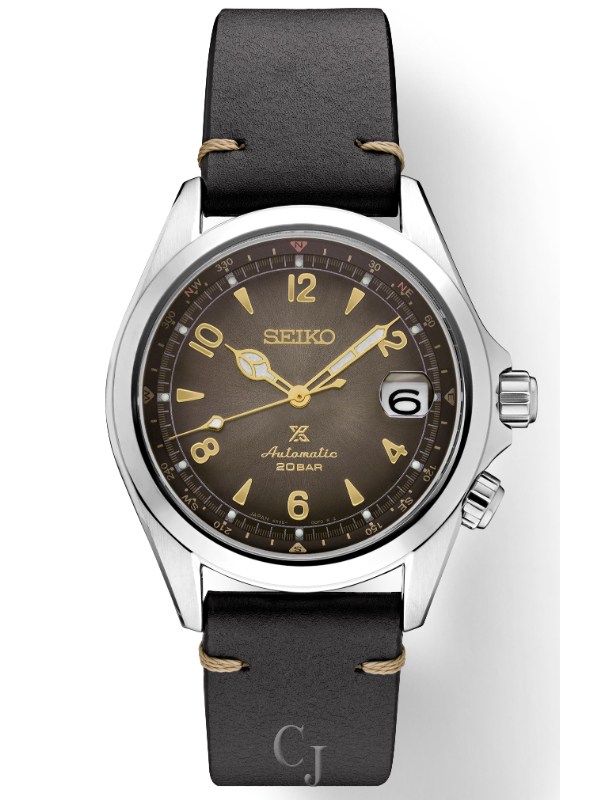 1959 Sports Watch Reinterpretation. Designed for those who treat life as the ultimate adventure, the Seiko Prospex line meets every challenge with technological excellence and style. Part of a rich legacy of innovation in high-intensity timekeeping, Prospex continues to celebrate over 60 years of sports watch excellence with recreations and reinterpretations of landmark achievements. A modern reimagining of Seiko’s first sport watch, introduced in 1959, this distinctive timepiece joins a highly successful line launched in 2019. Styled to fit contemporary tastes while evoking a vintage feel, this versatile watch features a rotating inner compass bezel framing a gradated brown dial with magnified date calendar and LumiBrite hands and markers, as well as an anti-reflective sapphire crystal. The 24-jewel automatic movement beats at a frequency of 21,600 vibrations per hour, with a power reserve of approximately 70 hours, and can be wound manually or automatically. Crafted of stainless steel, with screwdown crown, see-through caseback, black leather strap and tri-fold push button release clasp. 20 bar, 200M Water Resistant