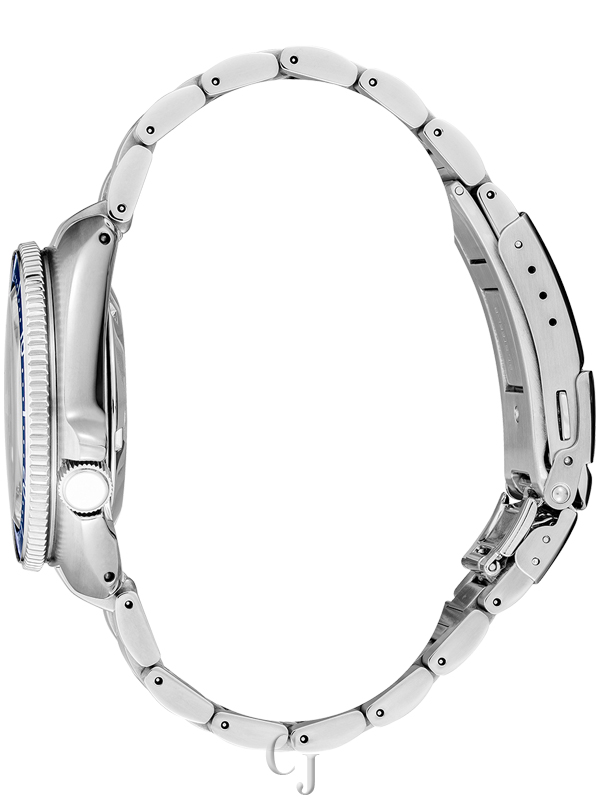 1970 Diver’s Watch Reinterpretation Limited Edition. Designed for those who treat life as the ultimate adventure, the Seiko Prospex line meets every challenge with technological excellence and style. Part of a rich legacy of innovation in high-intensity timekeeping, Prospex continues to celebrate a long history of sports watch excellence with recreations and reinterpretations of landmark achievements. This extraordinary watch, available only in a limited edition of 5,500, with the serial number engraved on each caseback, continues a celebration of the 55th Anniversary of Seiko’s first diver’s watch with a reimagining of the famed 1970 model, complete with the iconic case design that revolutionized underwater safety with a recessed crown creating a built-in crown guard at 4 o’clock. With contemporary styling and technology, this masterfully updated design, sleeker and slimmer than the original, is crafted of stainless steel with super-hard coating, and includes a curved anti-reflective sapphire crystal, blue one-way rotating elapsed timing bezel, screwdown crown and caseback, and tri-fold push button release clasp with secure lock and extender, as well as an additional blue-gray silicone strap. The rich marine blue dial features a date calendar and LumiBrite hands and markers. Following ISO standards for scuba diving to depths of up to 200 meters, this exceptional watch can be wound manually or automatically and includes a 24-jewel automatic movement with a frequency of 21,600 vibrations per hour and a power reserve of approximately 70 hours. 200m Water Resistant