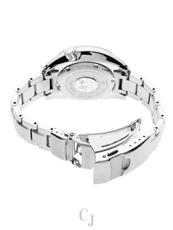 Built for the Ice Diver – U.S. Special Edition. Designed for those who treat life as the ultimate adventure, the Seiko Prospex line meets every challenge with technological excellence and style. Part of a rich legacy of innovation in high-intensity timekeeping, Prospex continues to celebrate a long history of sports watch excellence with re-creations and re-interpretations of landmark achievements. Honoring the acclaimed 2007 diver’s watch, with its distinctive wide case and the thick printed bezel numerals, this reimagined Special Edition also pays tribute to the durability of Seiko watches in the coldest conditions, with colors suggesting light reflected on ice. Trusted equipment for the Japanese Antarctic Research Expedition (JARE) and on Mt. Everest climbs, Seiko sport watches have forged a deep connection between the company and those who rely on superior timekeeping in the most demanding environments, from frozen peaks to the watery depths explored by ocean conservationists. The deeply patterned green dial, featuring a magnified date window and LumiBrite hands and markers, is topped by a scratch-resistant sapphire crystal. A 24-jewel automatic movement beats at a frequency of 21,600 vibrations per hour, with a power reserve of approximately 70 hours, and can be wound manually or automatically. Following ISO standards for scuba diving to depths of up to 200 meters, this exceptional watch is crafted of stainless steel, with green one-way rotating elapsed timing bezel, screwdown crown and caseback, and tri-fold push button release clasp with secure lock and extender. 200m Water Resistant