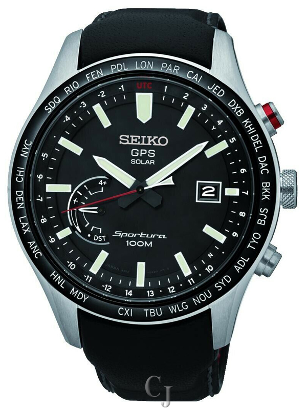 SEIKO SPORTURA GPS SOLAR BLACK LEATHER BAND SSF007