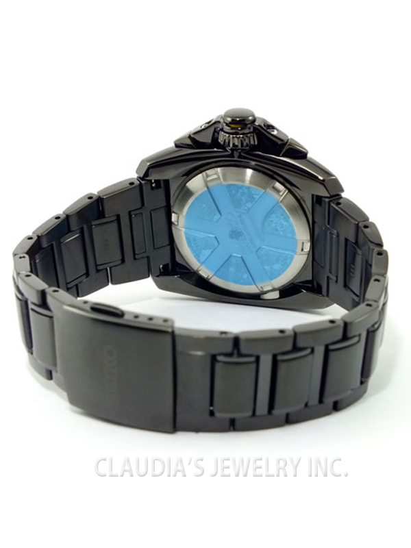 This Seiko men’s chronograph watch features a round black dial, silver tone hands and hour markers. All of these are framed in a black stainless steel case, scratch sapphire crystal, and tachymeter on the outer rim. It also offers a stainless steel bracelet secured with foldover clasp with single push button safety, Swiss quartz movement and water resistance up to 100meters/330feet.