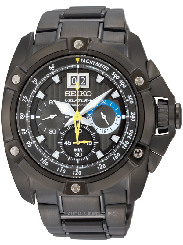 SEIKO VELATURA CHRONOGRAPH BLACK DIAL WATCH SPC073