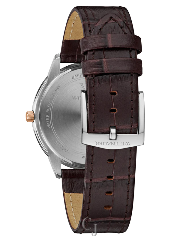 Crafted with a slim stainless steel case and scratch-resistant sapphire crystal, this timepiece is complemented by a brown leather strap with a traditional buckle closure for classic appeal. With 50M water resistance, the Continental delivers both modern refinement and everyday versatility.